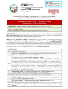 Il DIPARTIMENTO SEGRETARI COMUNALI E PROVINCIALI DI FEDIR nell’ambito del proprio programma formativo annuale, organizza LA PERFORMANCE: COME LA